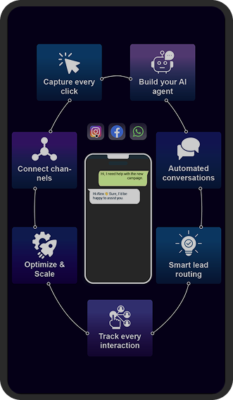 WhatsApp, Instagram, Facebook, Webchat… all in one place. Every lead flows into a single hub, ready to be converted